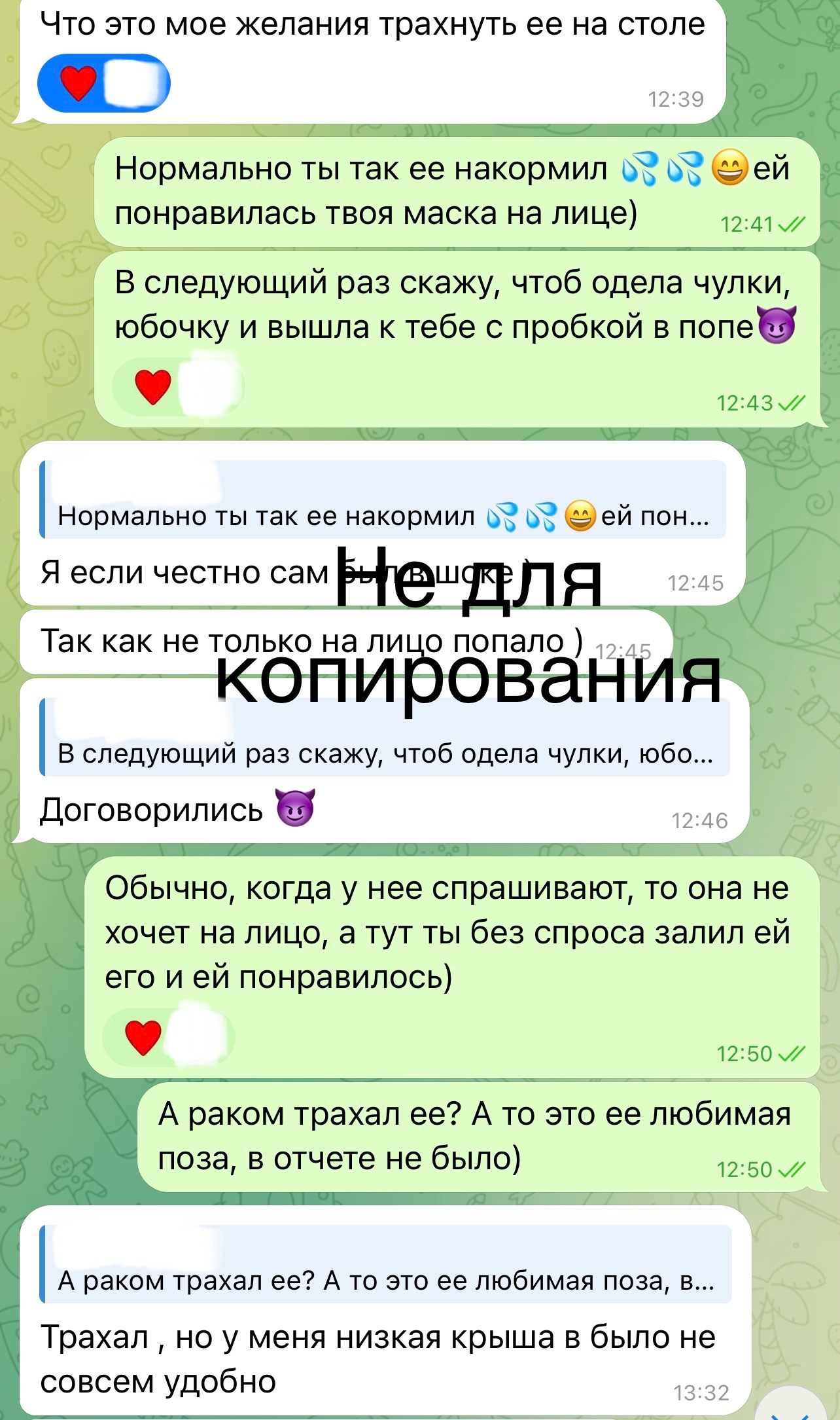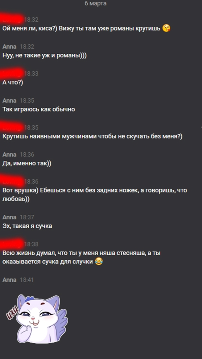 Стори №13 Пара м/ж, обоим по 30, началось все 2 года назад, когда спалил свою, что она переписывается с подкатывающими к ней челами (ей писали в инсте, кидали хуи и т.п, а она отвечала всем этим челам, с кем-то даже флиртила). Тогда закатил ей скандал, я уже был готов на развод, но пошли вместе к мозгоправу, который каким-то образом выправил всю ситуацию и мне стало на тот случай мягко говоря похуй, а если не мягко говоря - меня это стало даже заводить. По совету псехолуха все моменты связанные с секусуальной активностью начали обсуждать без осуждения, моя созналась, что ей нравится мужское внимание, когда к ней яйца подкатывают, особенно в реале, с моей же стороны я честно признался, что хоть меня в моменте когда я спалил ее переписки и у плачущей вырвал телефон и начал читать ее переписки, я пиздец как сгорел, но пока читал - у меня нихерово так привстал. По итогу решили, что я ей не буду мешать принимать внимание мужчин, а она в обмен на это будет со мной обсуждать каждый такой случай.