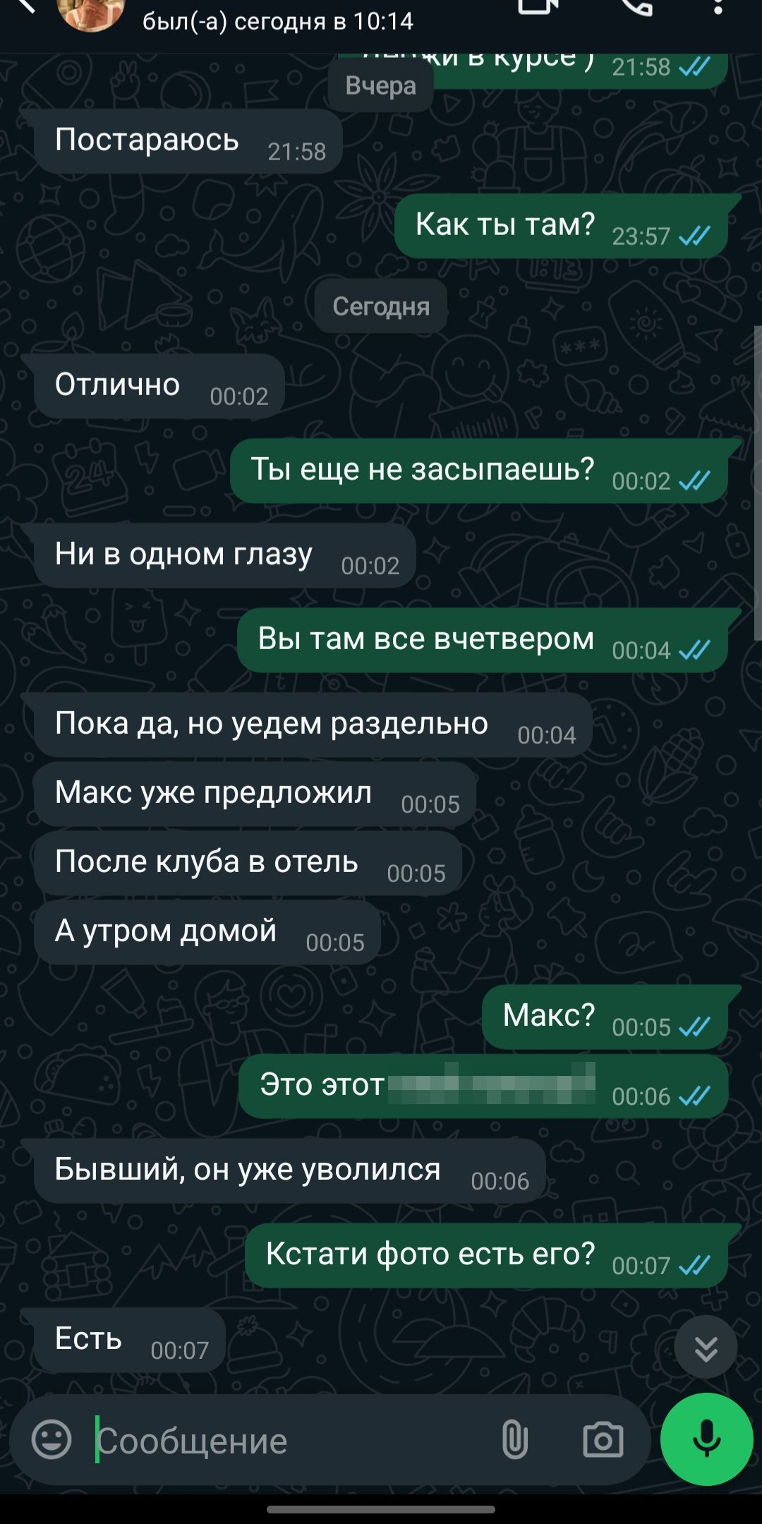 >>787552 В этот раз выкатился почти внезапно. Она с куном одним общалась давно уже в сети и хотела на днях сходить с ним в кафе познакомиться. В недавно еду на машине по делам и сообщения от жены прилетают. См скрины