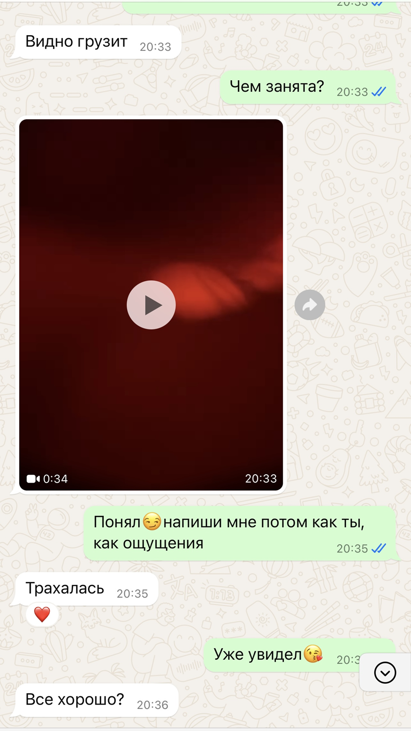 Стори 8 Приветствую коллег. Прошлогодняя история, нового давно не было, но мы в процессе. Продолжения переписки нет, она скинула мне несколько видео их секса, и заснула. Изначально мы списались с любовником на сайте, она поехала с ним познакомиться вживую в бар (скрины переписки как раз в этот момент). Он ей приглянулся, и не откладывая в долгий ящик, они направились к нему в снятую квартиру. Там сходу разделись, и сразу приступили трахаться стоя у большого зеркала. Потом переместились в спальню, продолжили там. Отдыхали, и в этот момент она присылала мне короткие видео, которые успели снять. Я тогда впервые увидел, как её трахают, дрочил на видео всю ночь. Потом она пропала, как оказалось, снова трахалась перед сном, и осталась там ночевать. Утром уехала на работу, и вечером мы встретились дома, где всё обсудили. Было хорошо, но одновременно как-то необычно, что ли. Из-за месячных они особо не экспериментировали, но кровать вроде не замарали. Как-то так