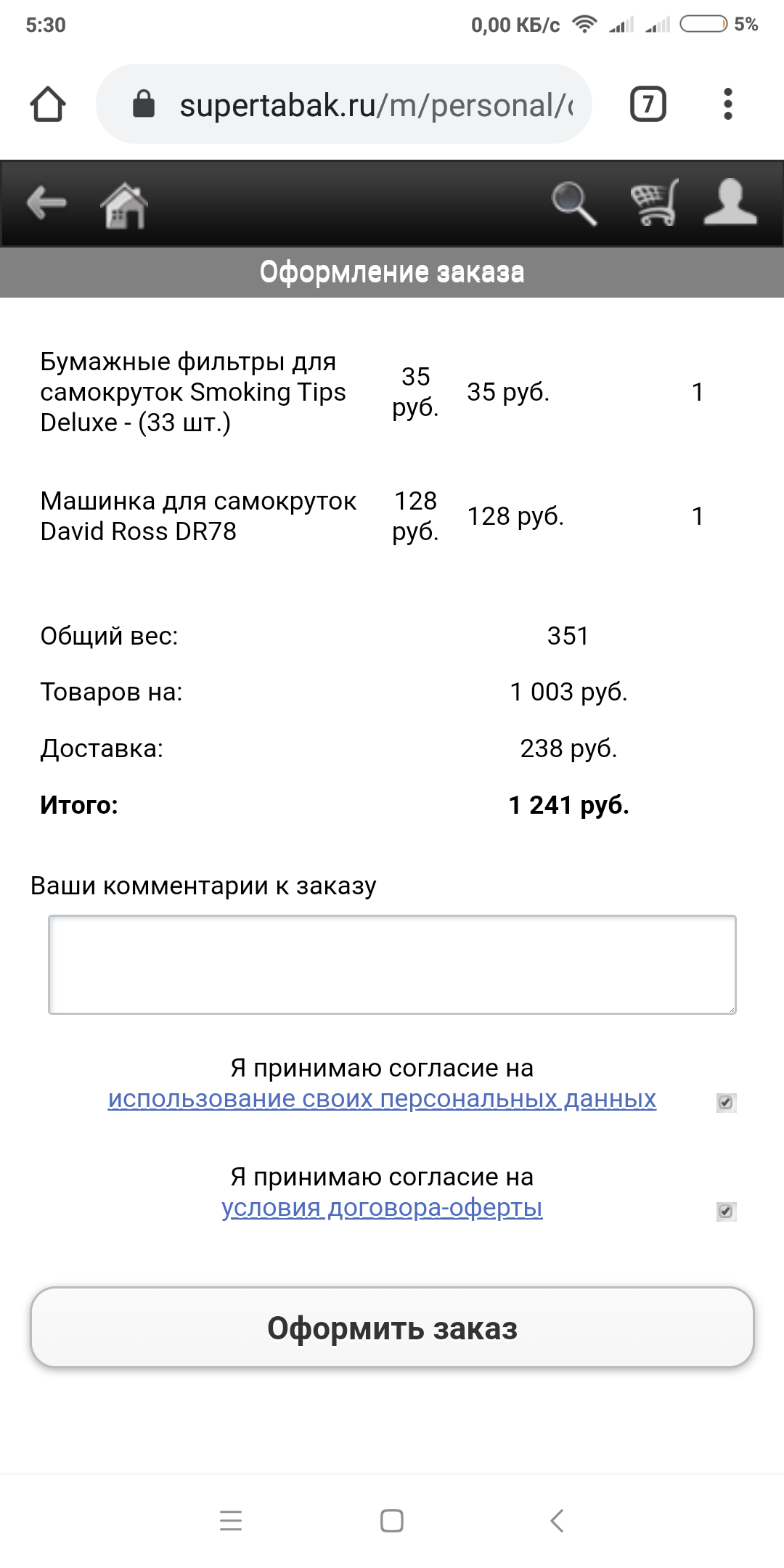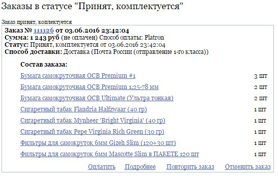 >>5305 1) с 40гр у меня выходит ~60 самокруток. 2) Да, вменяемая цена сейчас около 300р/40гр. 3) Если гильзы - то сами гильзы и машинка к ним, ничего про это сказать не могу так как даже и близко к этому не подходил. Если для самокруток - то бумага Ocb #8/#4/#1/Ocb Ultimate/Gizeh Superfine. Фильтры - Mascotte или Gizeh, 6мм(базарю еще захочешь) простые а не угольные. Машинка не нужна. Правда годных гайдов про кручению толком то нет. Но ничего, на первом же кисете научишься. 4) Зависит от того, куда тебе все это надо доставить. Мой пример - доставка Boxberry, цена в основном зависит от объема, но в основном это около 300р. Доставляют в ебеня 120к что близ Екатеринбурга за 5-7 дней (как то раз вообще за 3 дня привезли). Если оплачиваешь сразу, то с тебя не возьмут за страховку(на случай если ты ее забирать передумаешь).