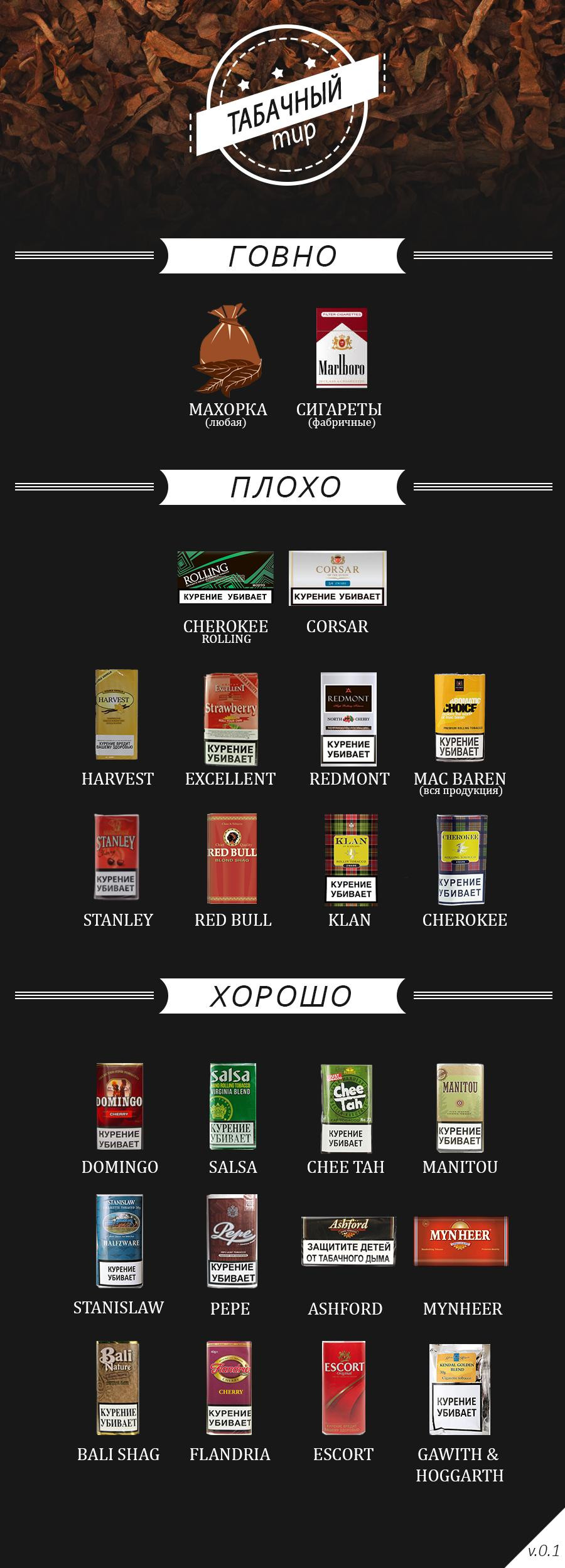 >>5319 На данный момент табачный tier примерно следующий: нынешняя махорка<фабричные сигареты<говно<Stanley<Cherokee Rolling<Taste<Harvest<Excellent<Redmont<все от Mac Baren Company(Choise, best blend,bucaneer, amsterdamer, django,club 69) <Red Bull<Klan<моча<Cherokee<Corsar<Salsa<Chee Tah<Pepe<Manitou<Bali Shag<Stanislaw<Domingo<Ashford-Mynheer<Flandria<Escort<Gawith & Hoggarth В принципе, все что идет после мочи составляется индивидуально, но все примерно соответствует действительности.