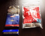 Начитался тут про самокрутки и тоже решил вкатиться. Весь набор в моей мухосрани мне обошелся в 960 р. Понимаю, что оверпрайс, но для пробы этого дела деваться было некуда (а если зайдет, то буду выписывать уже онлаен). Итак: Mac Baren Unitas Excellent Halfzware (в описании бленд Kentucky, Virginia), фильтры T&T 8x15 (вроде как укрепленные), бумага american aviator original (обыкновенная белая).