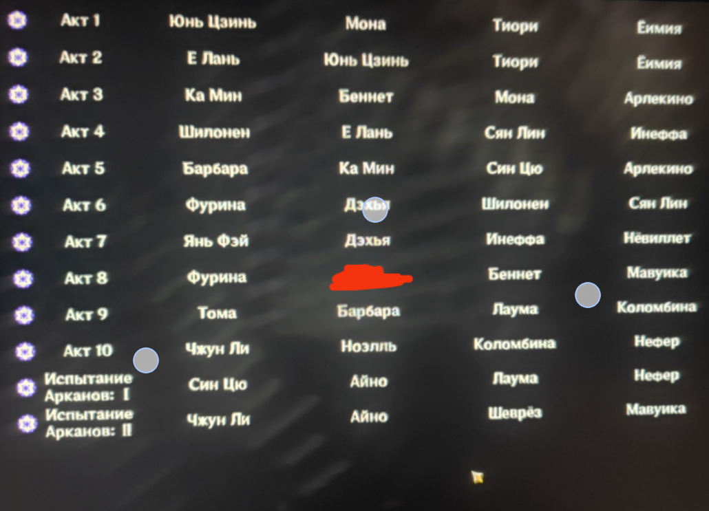 Я туалетом, фуриной, сянкой и Качиной в сете который баффает элеменальный урон проходил, спокойно закрыл. Ни у кого Сигн нету. Консты тоже у туалетного нету, только у Фурины 1 и у сянки 4. Без сянки тяжеловато было, а с пиро, там крутилка его режет ваще изи прошёл.