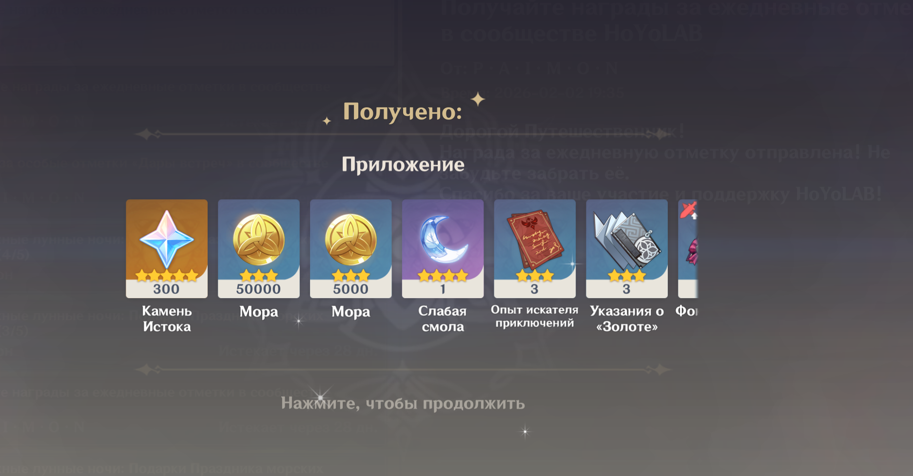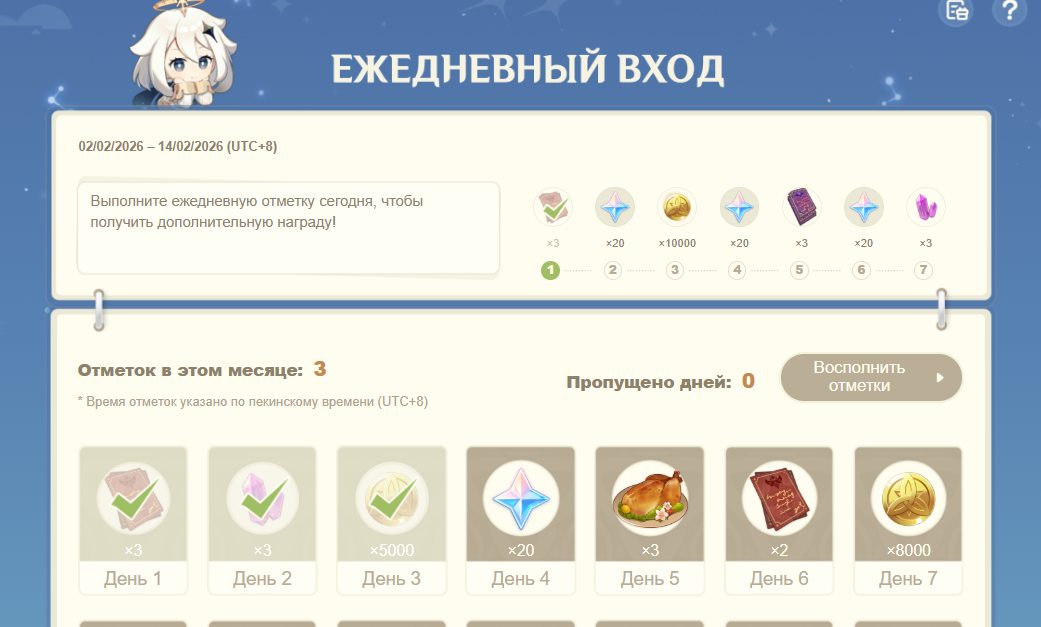 ✦ Чек-ин https://act.hoyolab.com/ys/event/signin-sea-v3/index.html?act_id=e202102251931481
