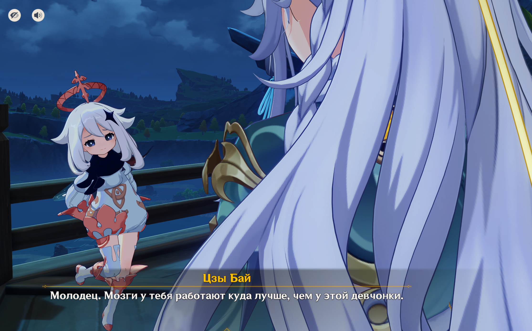 Мужик, который знает всё, то есть буквально всё, разговаривает с человеком и паймоной, которые и свою надежность вроде как доказали, и весь Тейват кверху дном переворачивают