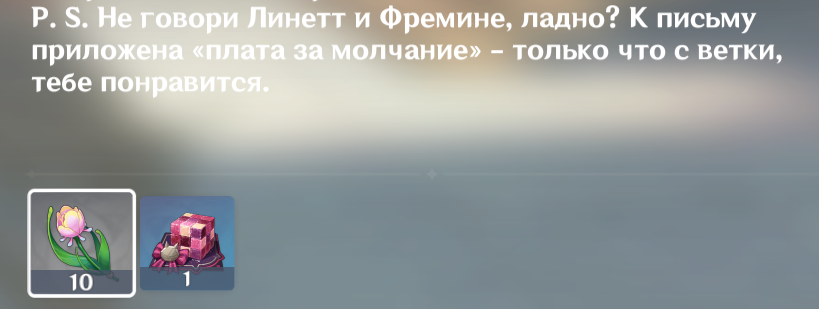 Алсо, а эту ненужную хуйню за овер-денег она купила чисто, чтобы Нинку впечатлить, лол. План дурной как по мне - впечатлить самую богатейшую женщину Тейвата дорогой приблудой.