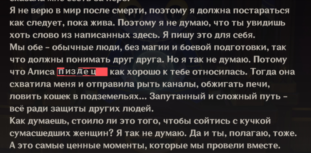 Меня конечно забавляет, как Чмоня порой рефлексирует об уходе каких-то случайно встреченных персонажах, при том что в результате его ебланистических действий люди порой помирали в промышленных масштабах