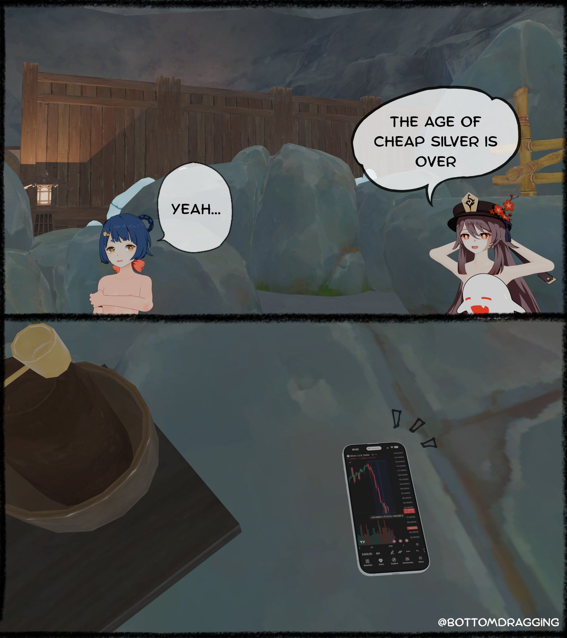 Да ладно ЧжунЛи, тут интересней момент был. БейДоу купила какую-то хуйню, внимание, за 90кк моры. Откуда у неё столько денег вообще? Разве капитан корабля может скопить столько и считать это допустимыми тратами? Потом ещё сказала, чтоб все мы тоже ни в чём себе не отказывали за её счёт.