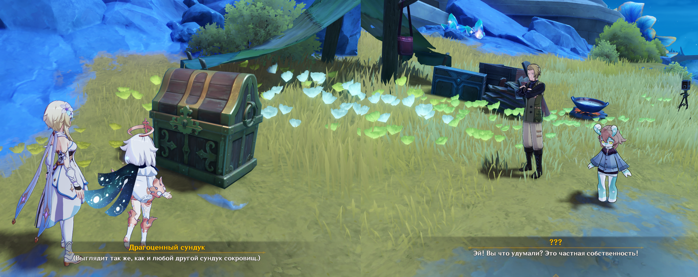 >>6320278 Самому гг да, а так уже несколько раз были сценки где не просто мобы охраняют сундук, а именно с комментарием "эй, это НАШ сундук, ты че охуел" нападали на игрока