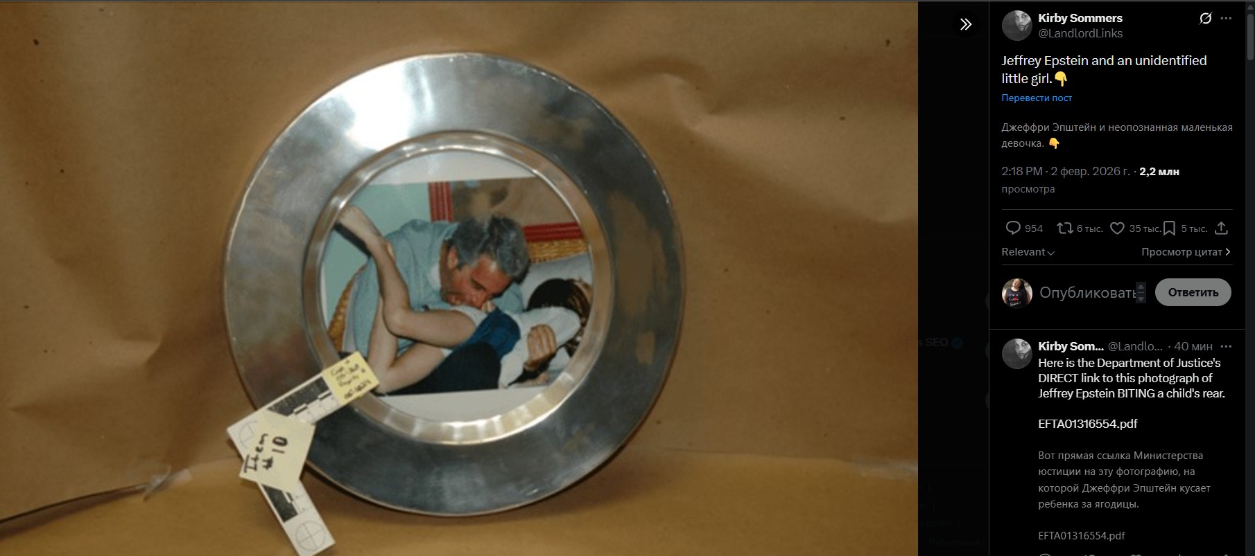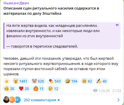 И теперь, внимание: в рассекреченных файлах Эпштейна нашли этот пост.