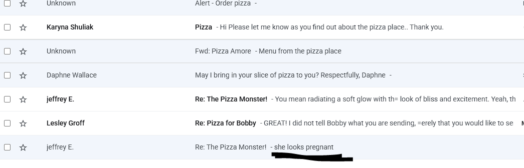 «Сырная пицца» — это, как правило, сленговое обозначение детской порнографии. «Пицца», вероятно, просто сокращение, используемое между друзьями. «Печенье» — скорее всего, обозначение влагалища. «Виноградная газировка» — вероятно, обозначение изнасилования. Остальное вы можете додумать сами.