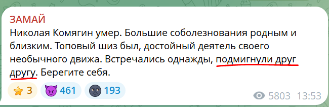 замай рассказывал эту стори кучу раз и в полном виде это звучало как "я был с мамой в ресторане, сидит комягин, кивнул ему, а он на меня как на говно посмотрел с кислой рожей, но тоже кивнул"
