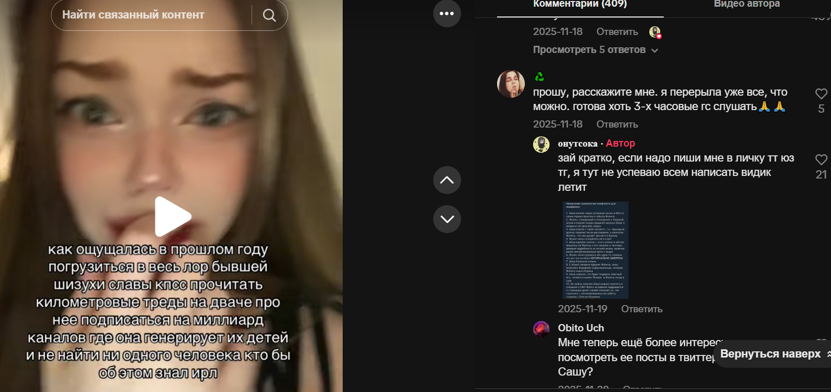 >>26232959 Я думаю ЭТО ВСЁ в рамках той же самой многолетней шизы связанной с жопичем. Попытка прожить заново тот же сценарий, возможно даже полностью в своей фантазии. Возможно ей кажется что это магически подействует на жопича. Там всегда всё не то, чем кажется. В любом случае, она живёт в рамках всё того же сюжета и продолжает врать