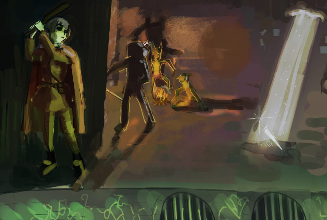 >>943666 Посмотреть пару видосов по перспективному рисованию интерьеров. Собрать рефы по склепам и подземельям на пинтерест. Собрать рефы по девочкам с оружием, девочка в подземелье, искатели приключений, а так-же что-нибудь типа sneakeng, thief. Заскринить этот фрагмент в игре. Набросать пару ракурсов с акцентом на девочку офк. Выбрать лучший, дорисовать.