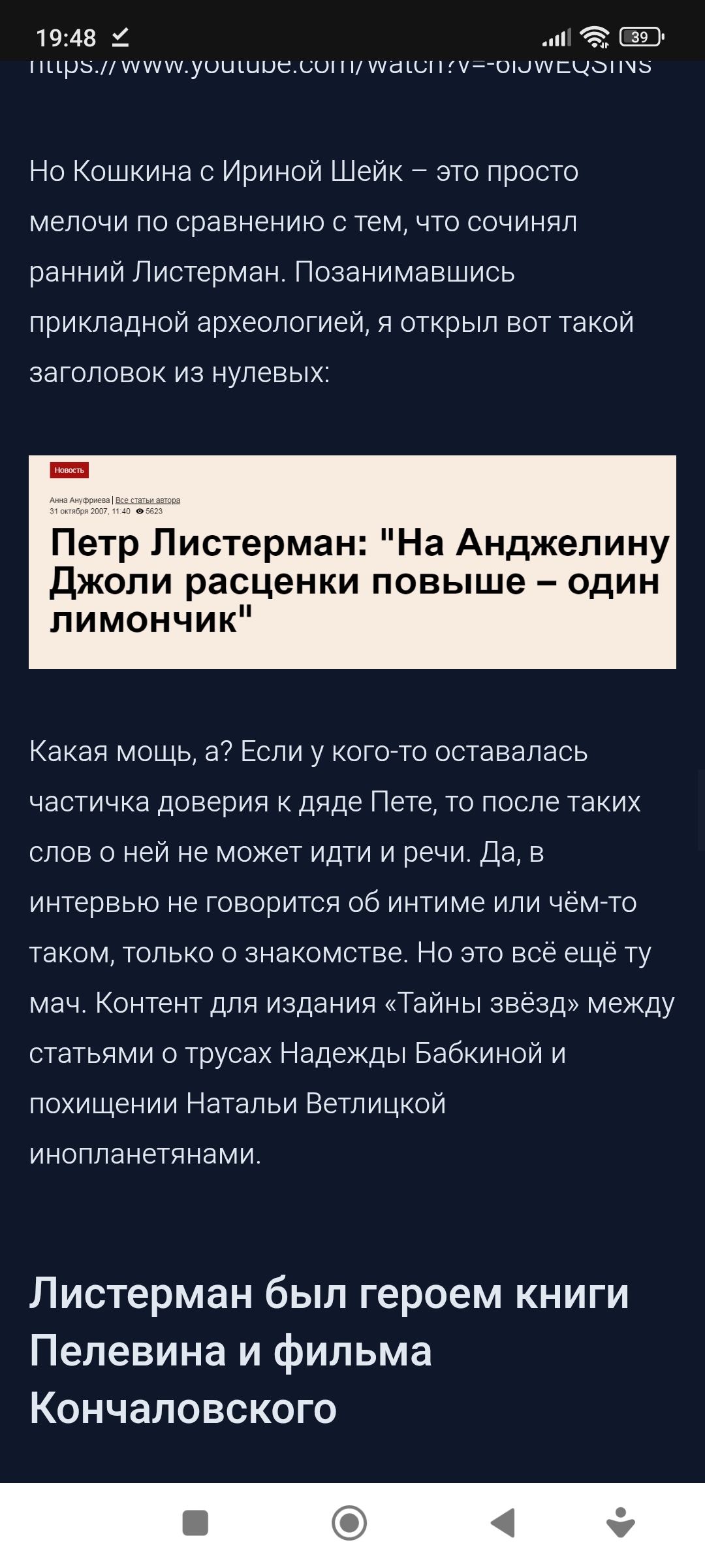 Типичная пелевинщина, в которой попкультура пересекается с мифологией. Самое то для человека, сознательно превратившего себя в миф. Хотя чисто идеологически Листерман больше похож на героя «Духless» или другой книги Сергея Минаева, описывающего жирные нулевые в кругу развращённых элит.