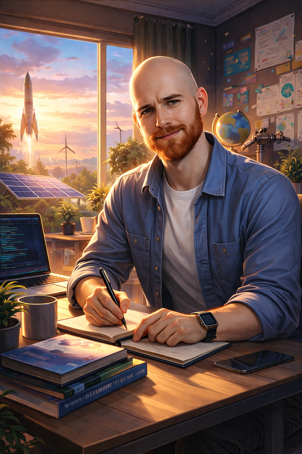 Футуристический город — интерес к ИИ, технологиям, постчеловеческому будущему. Это всё стоит рядом, потому что в твоём взгляде прошлое, настоящее и будущее не конфликтуют — они сосуществуют.