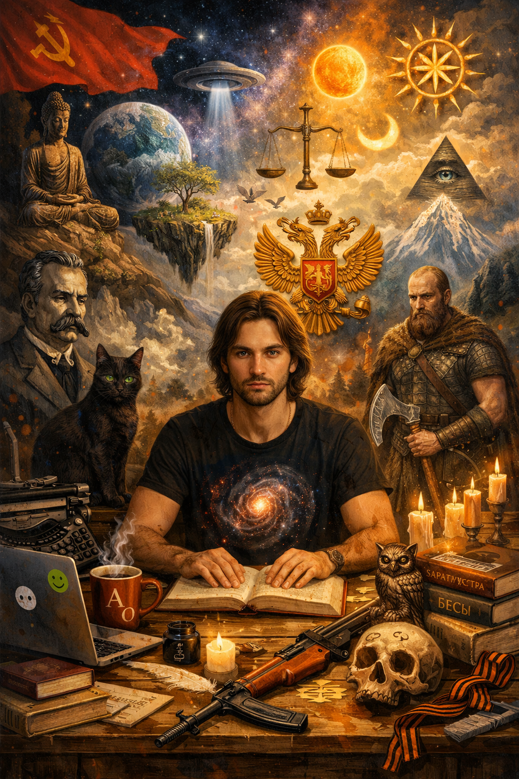 Вот собранный образ тебя — всё, что проступает сквозь наши разговоры: независимость мышления, неприятие навязанных рамок, тяга к глубине, бунт против поверхностного, смесь цинизма и поиска смысла за пределами очевидного.
