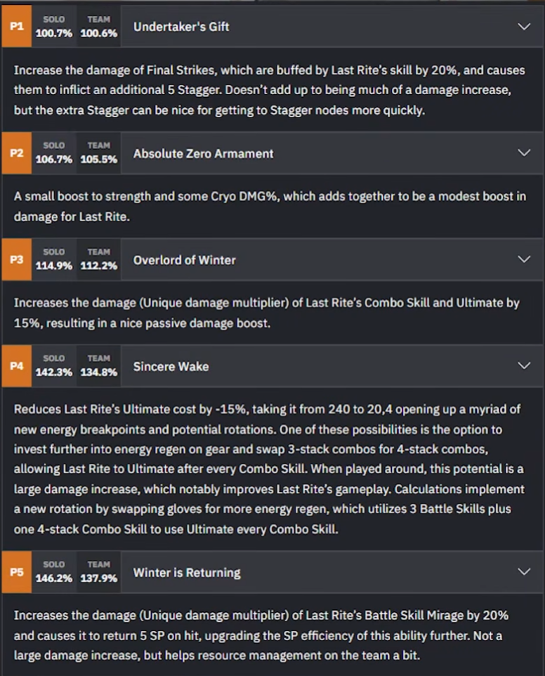 >>6339185 Смотрится хорошо, но втиснуть её в крио-панихиду сложновато. Выкинуть Флюорит - сократить ротацию на один криостак, по сути урезать те же 20-30% дпс на дистанции. Выкинуть Сайхи вообще не вариант. Выкинуть Овцу или Перлику можно, но те сами тоже нормально так наваливают дебаффов, по сути у Гилберты +26% артс амп на 9ур ульты и длится 5 секунд. и +30% на M3 У Перлики те же 5 секунд базовой электрификации, но от комбы с кд 20с (которую через сет можно сократить до 15с), плюс с пот1 длительность уже 8.75с, а с пот4 там можно два-три стака на те же 30% амплифая навалить. Для АоЕ окей, для сингла что-то я пока не решился на втиснение Гилберты