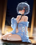 Best quality anime artwork. A woman with very long silver hair and striking heterochromia is on a packed commuter train. She wears a sheer sundress, revealing the outline of her wet white panties as she playfully lifts the skirt with one hand while holding onto the overhead rail with the other. A slight blush colors her cheeks as she glances to the side. In the background, a young boy points at her in curiosity and his mother glares with annoyance. Low angle perspective, train ceiling visible. Public setting, subtle exhibitionism.