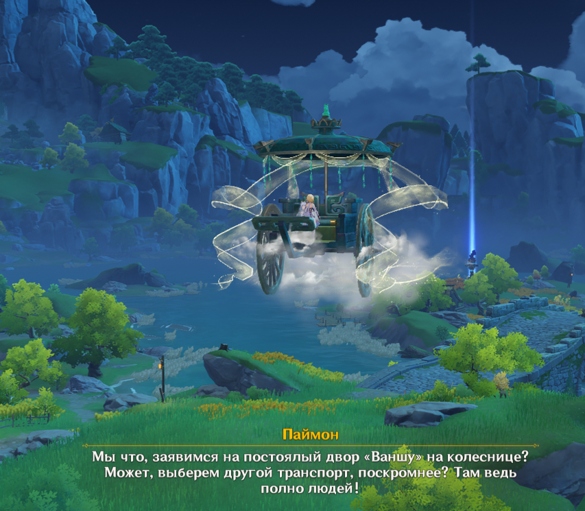 Я вот реально не понимаю. То есть они же вроде скрывают личность Цзи Бай, типа она актёр, косплеер и вообще не настоящий адепт... А никого не парит, что она просто над населёнными пунктами на своей чудо-карете летает, бля? Такой хуйни даже у Нин Гуан нет, а тут косплеер из колесницы выходит, заходит, потом летает на ней. Никаких вопросиков у людей не возникает случаем?
