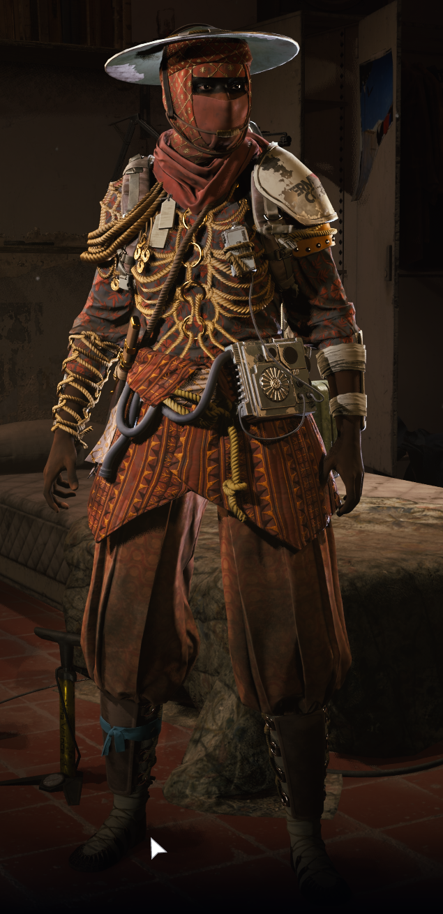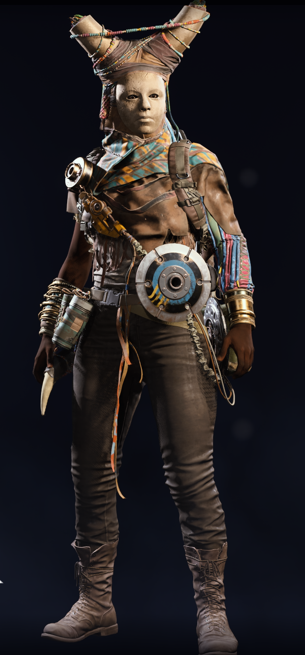 в постапокалипсисе где бомжи в помойках роются чтобы себе шмотьё из разноцветных обносок и консервных банок сшить выбирать не приходится. это же не война тактикульщиков, чем цветней тем зажиточнее рейдер. хотелось бы костюм в стиле старых охотников только вместо шкур из роботов какую-нибудь хуйню. типа шляпа из бошки липера или что-нить в таком духе