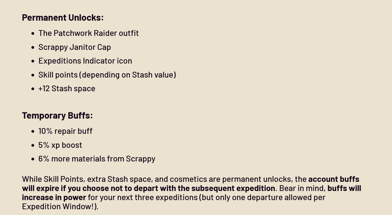 16.12.2025 вышло зимнее обновление "Cold Snap", позволяющее посетить уже приевшиеся за два месяца непрерывных выходов на поверхность карты в новой зимней обёртке. Заряжайтесь новогодним настроением, рейдеры! Решением партии каждый рейдер награждается снеговиком из металлолома, дабы скрасить холодное одиночество в Вашем жилье.