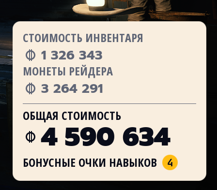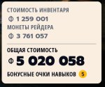 >>50574300 На самом деле действительно напиздел, не пять, а четыре, лям инвентаря плюс денег суммарно у меня уже был. Стелла ночью и жилые области зимой приносят охуевшие бабки. Попробуй.