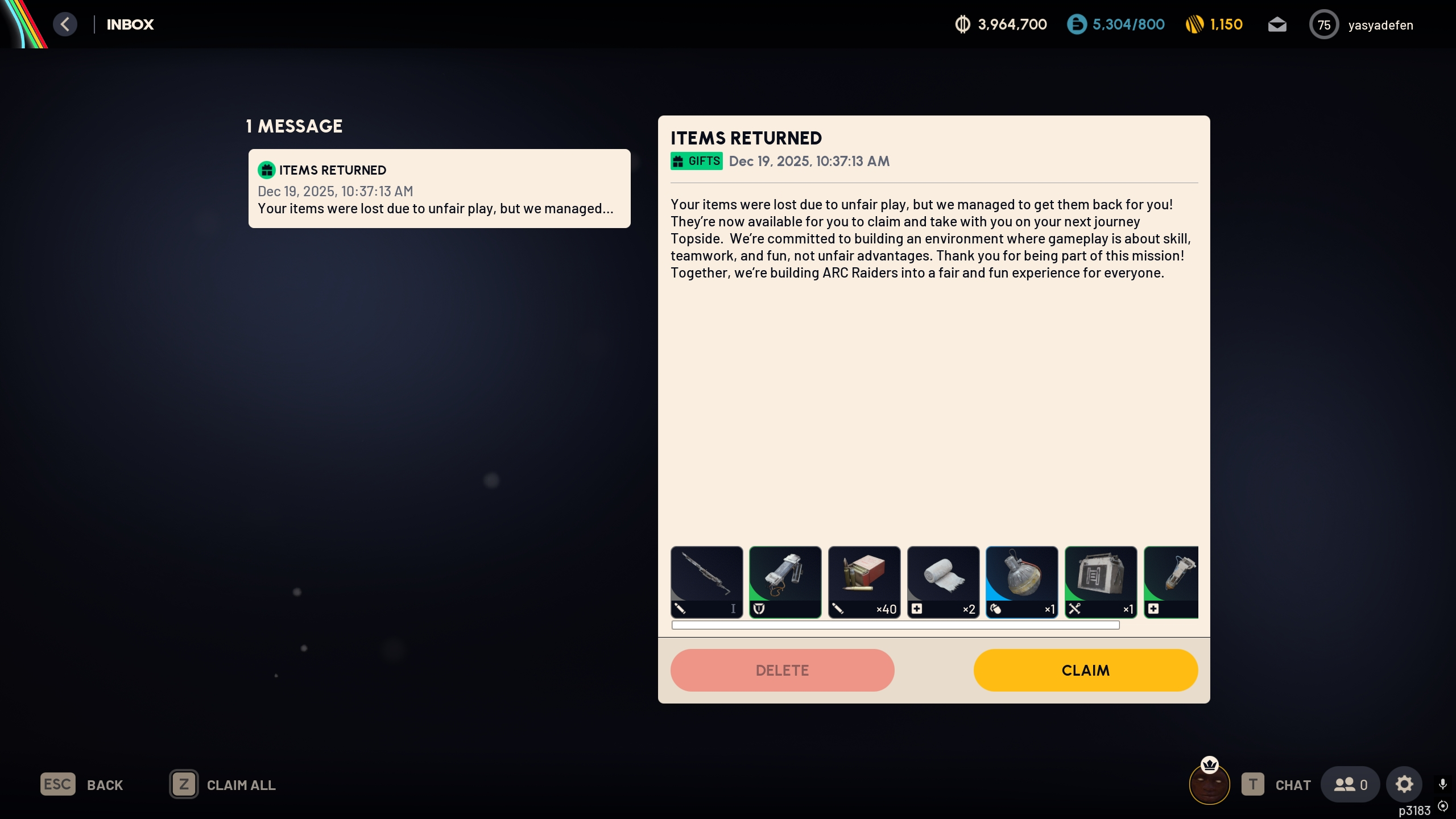 За пару дней до вайпа встретил жва раза читаков, только сейчас пришли письма счастья. Теперь играю на топовом луте кошу вайпнувшихся. А главное рюкзаки нормальные с тремя жопами.