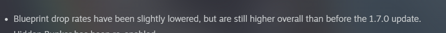 Ахуенно они "слегка" понерфили дропрейт. 4 рейда - 0 бп, 3 из них на бункере, на котором я бежал СУКА КАЖДЫЙ РАЗ КИЛОМЕТР БЛЯТЬ ДО ТРЕНЧ ТАУЭРА С КЛЮЧОМ И БЫЛ УБИТ 2 ИЗ 3 РАЗ НАХУЙ.