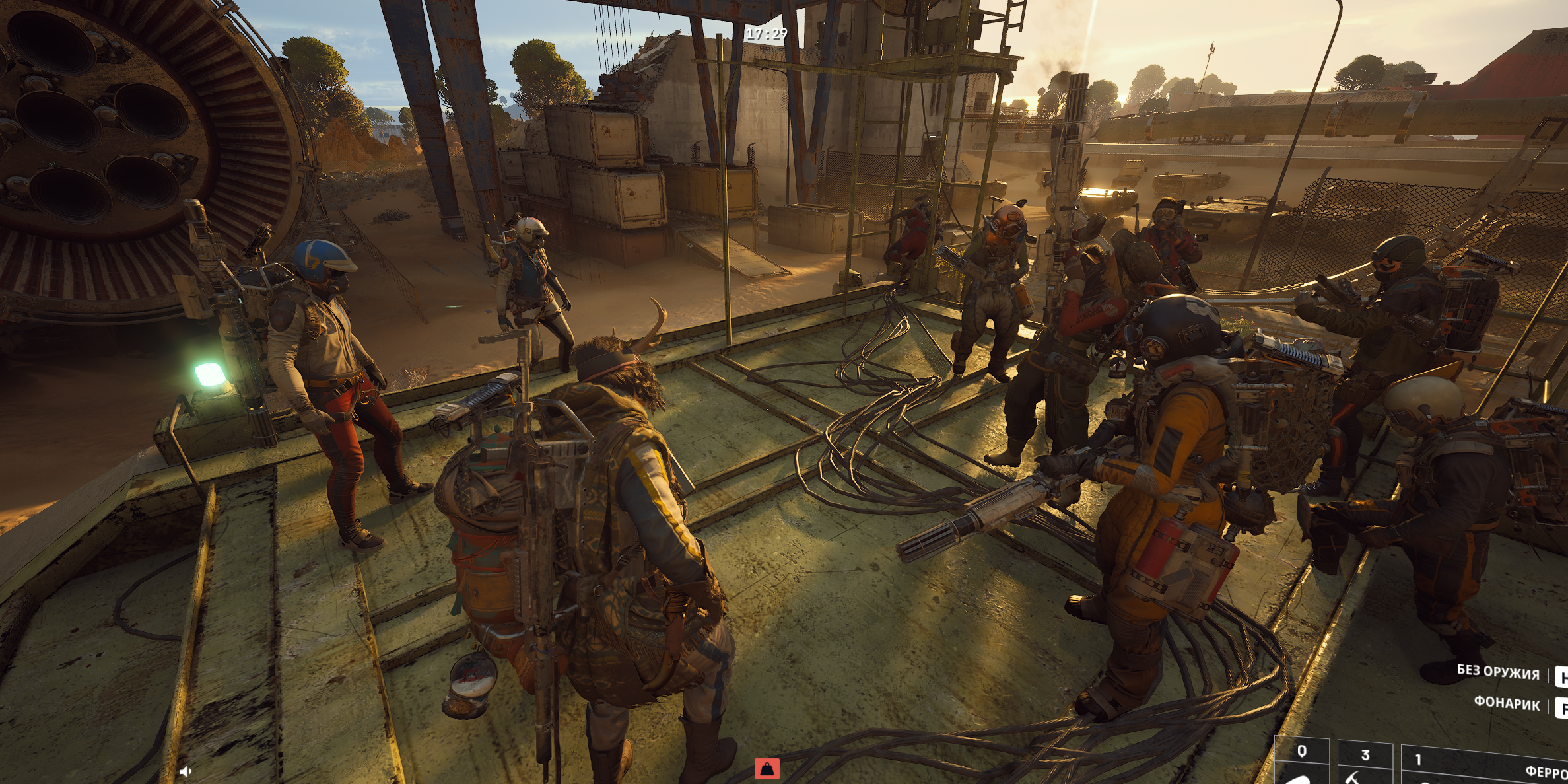 Все верстаки, кроме оружейного, апнуты до 3 уровня, так как Эти турели здоровые что-то пока не спавнились, но кроме их ядер все остальные ресурсы уже собраны. Петух максимально прокачен.
