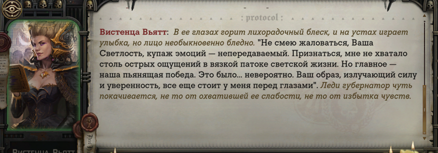 >>50727935 Там супер хуевое раективити. У котов чет привычка пытаться незаметно какую-то хуйню подсунуть, пытаясь навязать гоям, что это пиздатая вещь - то игру растянут, подсунув корабли или походы, то рельсовое "реактивити", которое нихуя не реактивити, а просто строчка в тексте, на кой-то хуй напоминающая тебе, какой вариант диалога ты в прошлом выбрал и не несущая последствий. Тру реактивити, например, в вампирах была, когда у тебя буквально вся игра от выбранного ориджина менялась и в следующем прохождении ты охуевал с того, как много всего поменялось, и как много деталей ты в прошлом ране пропустил.