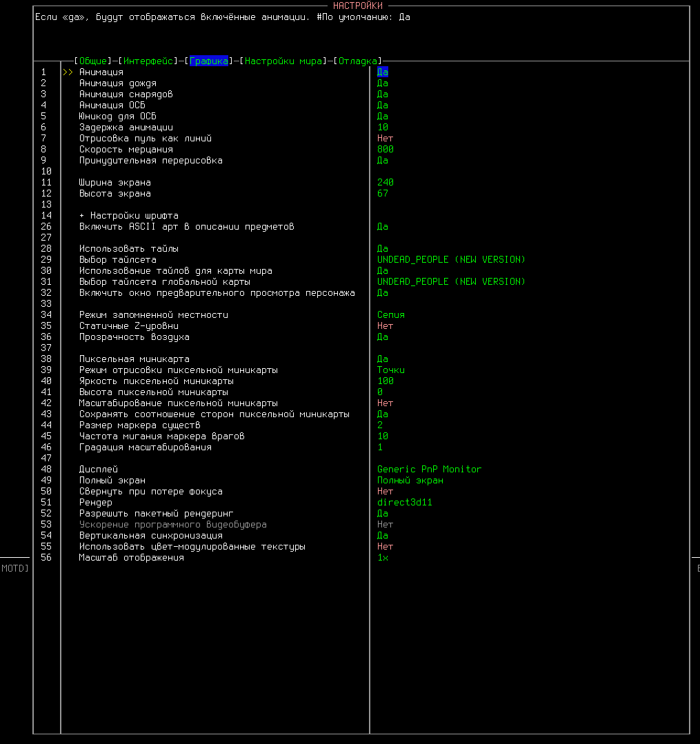 >>50320957 >Ты в настройках ничего не делал? Нет, скачал с гитхаба версия 0.8.0, статы видно на >>50319949 поменял тайлсет на андеад чтобы вам привычней смотреть было. От него можно убежать если убегать, но если стоять и жать таб то он подходя начинает "прыгать" по тайлам.