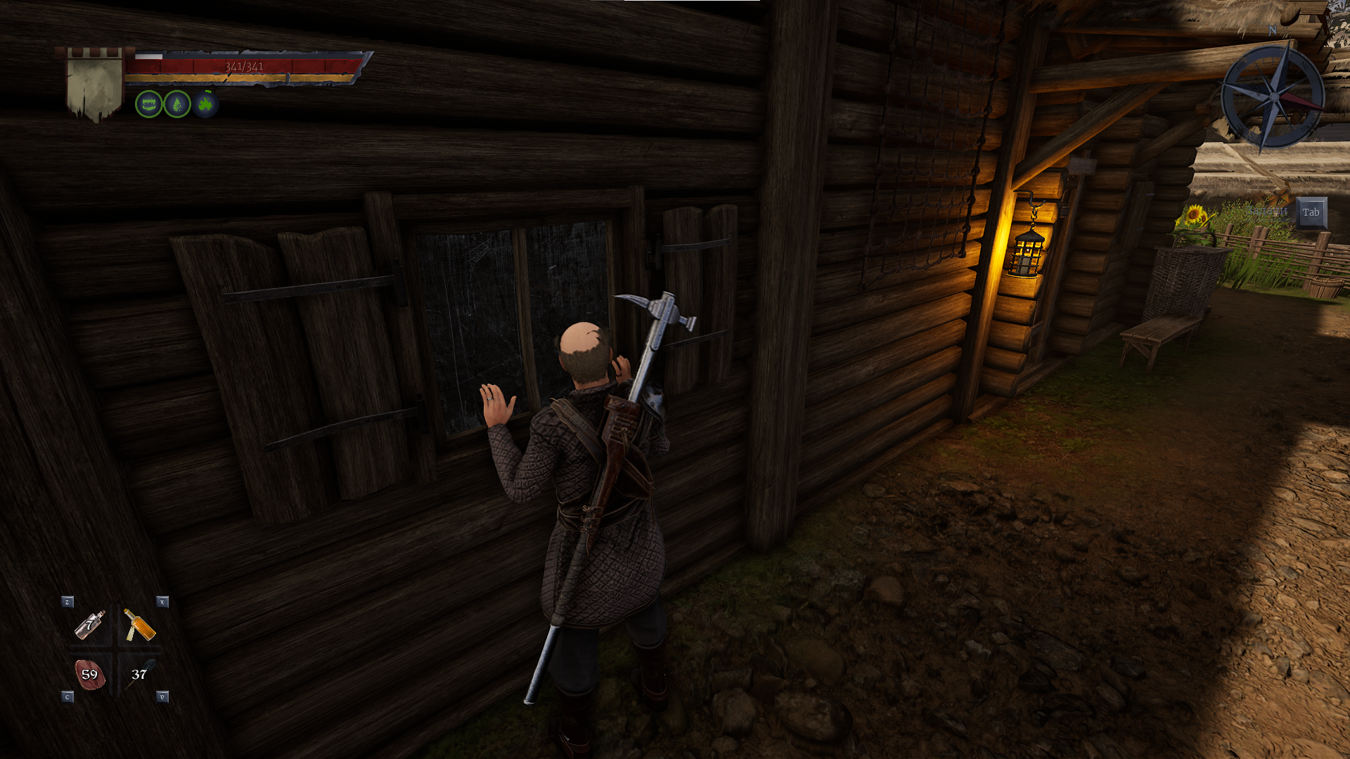 Лук егеря для начала выбивается в лагере охотников с охотника. Легендарный топор для начала выбивается со стражника на втором этаже казарм (где тюрьма ещё) Остальное подбирается по ходу исследования.