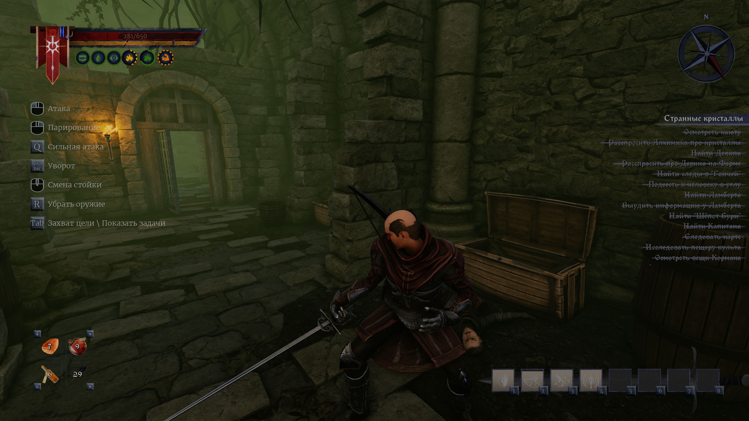 И для двуручек есть приём, который не описан нигде. Это вперёд + пробел + лкм. Выпад, которым ебётся 99% врагов, включая червей и рапирщиков.