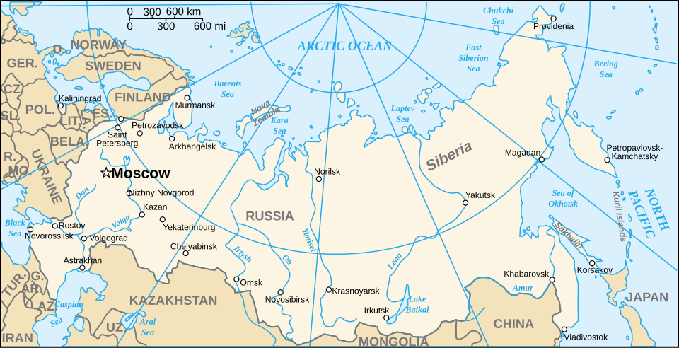 Крупные города в Сибири расположены в относительно узкой полосе близ южной границы, за исключением Красноярска.