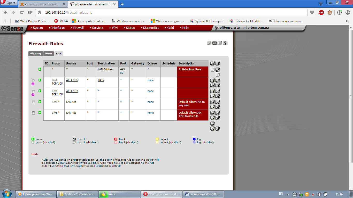 На ней две сетевых. LAN1 она же eth0 работает без проблем через vmbr0, LAN2 (eth1), при работе через vmbr1 не видит сеть.