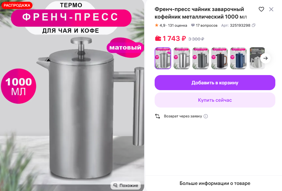 Loraine чайник с сеткой внутри как в кафе, заебись не надо чаинки ловить блять
