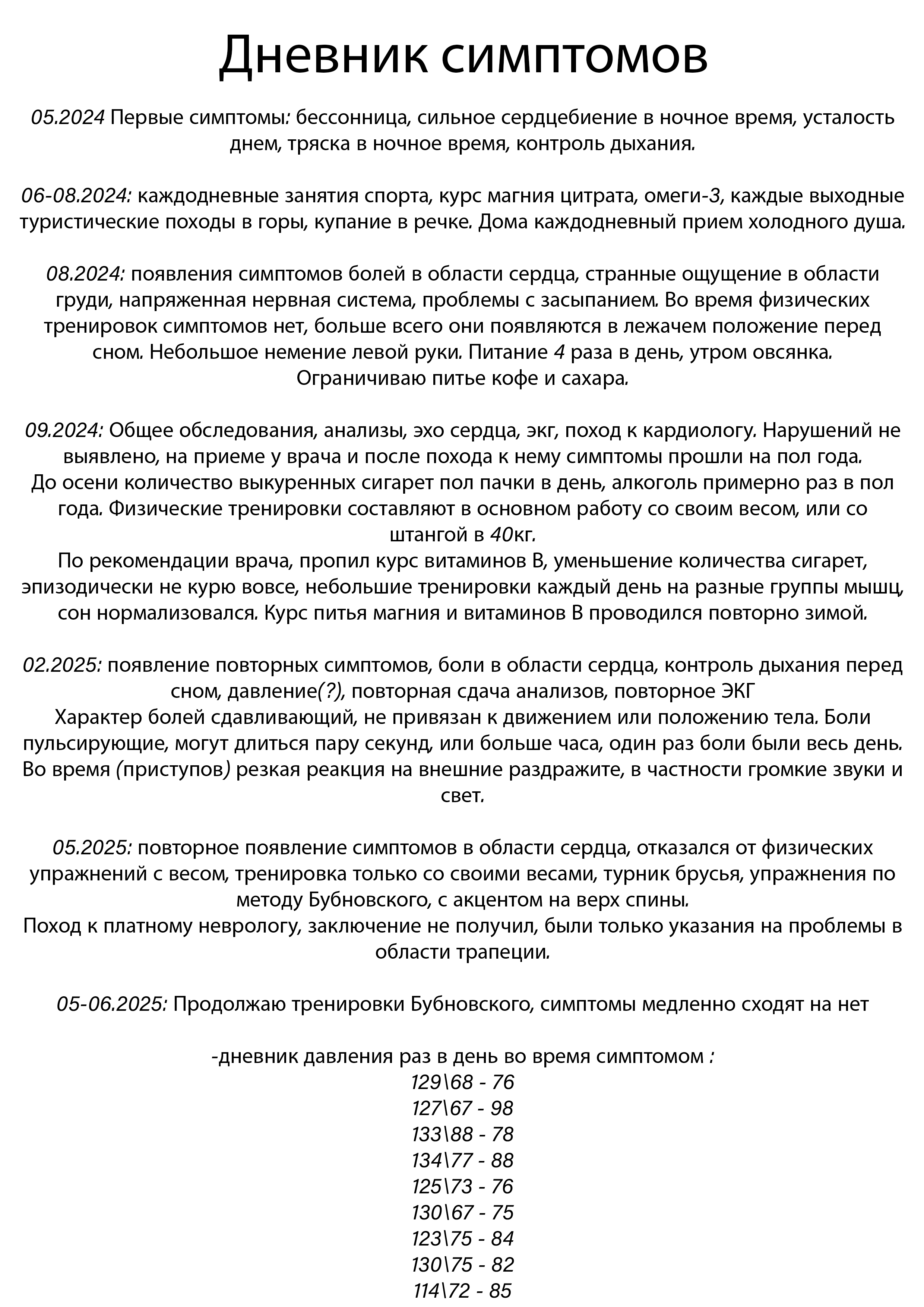 За последние 2 дня приступов не было, но сохраняется ощущение будто бы не проснулся до конца и шея болит справой стороны. От шеи пью диклофенак, кофе из рациона вывел, физкультуру с силовыми пока приостановил, АД\ЧСС в рамках нормы. Благо сейчас в отпуске, но потом начнется стресуха, и что тогда? От терапевта кроме глицина и если давление высокое закидывать 25 мг каптоприла особых указаний не получил. Ну постельный режим.