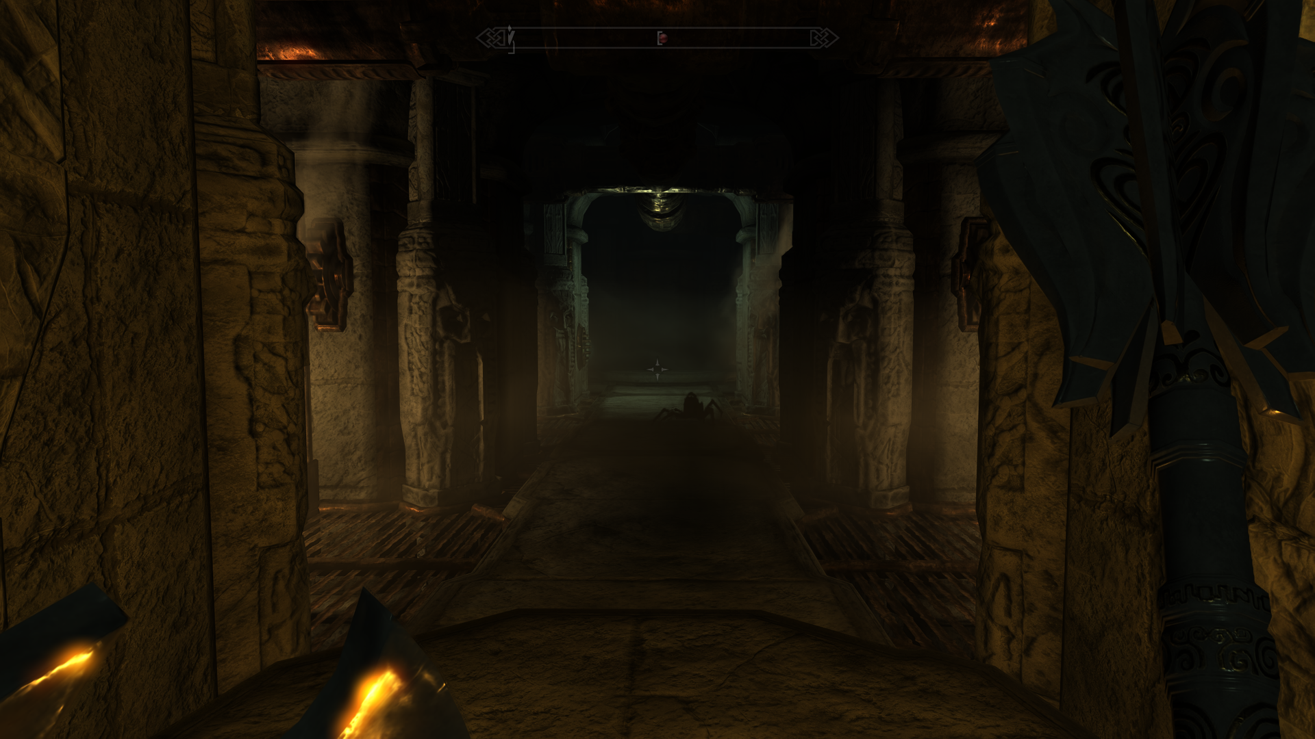 Это вам за древних фалмеров, гомонордские фанатики. Одного такого вон в снегу нашёл, до сих пор от сердца к солнцу кидает. Непонятно только почему с вражеских офицеров не снимается флаг важных персонажей после окончания гражданки - их без мода убить нельзя. Ещё впервые за все прохождения Скайрима зашёл в Лабиринт Шалидора - вообще не обращал внимания на существование этой локации раньше. Обнаружил и зачистил все локации в игре, последняя - Красноводное логово, в которое по сюжету Стражи не попал, так как не вампир. Там имперец из Хелгена до сих пор гг помнит, хотя у меня в игре прошёл год и две недели примерно. Теперь осталось построить дома и задрочить Нелота, чтобы он наконец выдал свой последний квест.