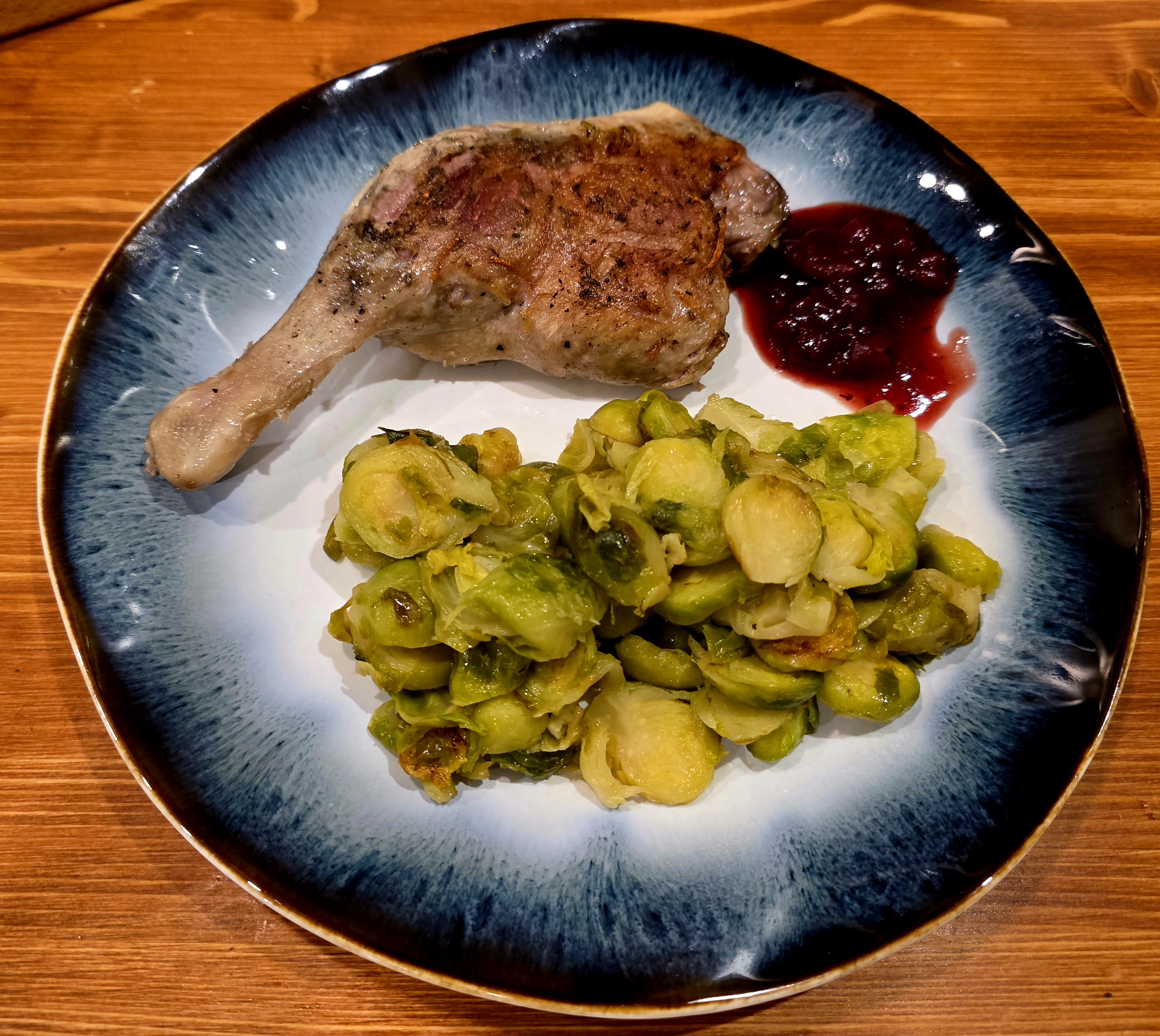 >>764453 Утиная утка су-вид, брюссельская капуста и брусничный соус. Утка мягкая нежная, но кажется либо передержал либо температура слишком высокая : структура не такая плотная как хотелось на волокна расходится. Нужно ещё экспериментировать.