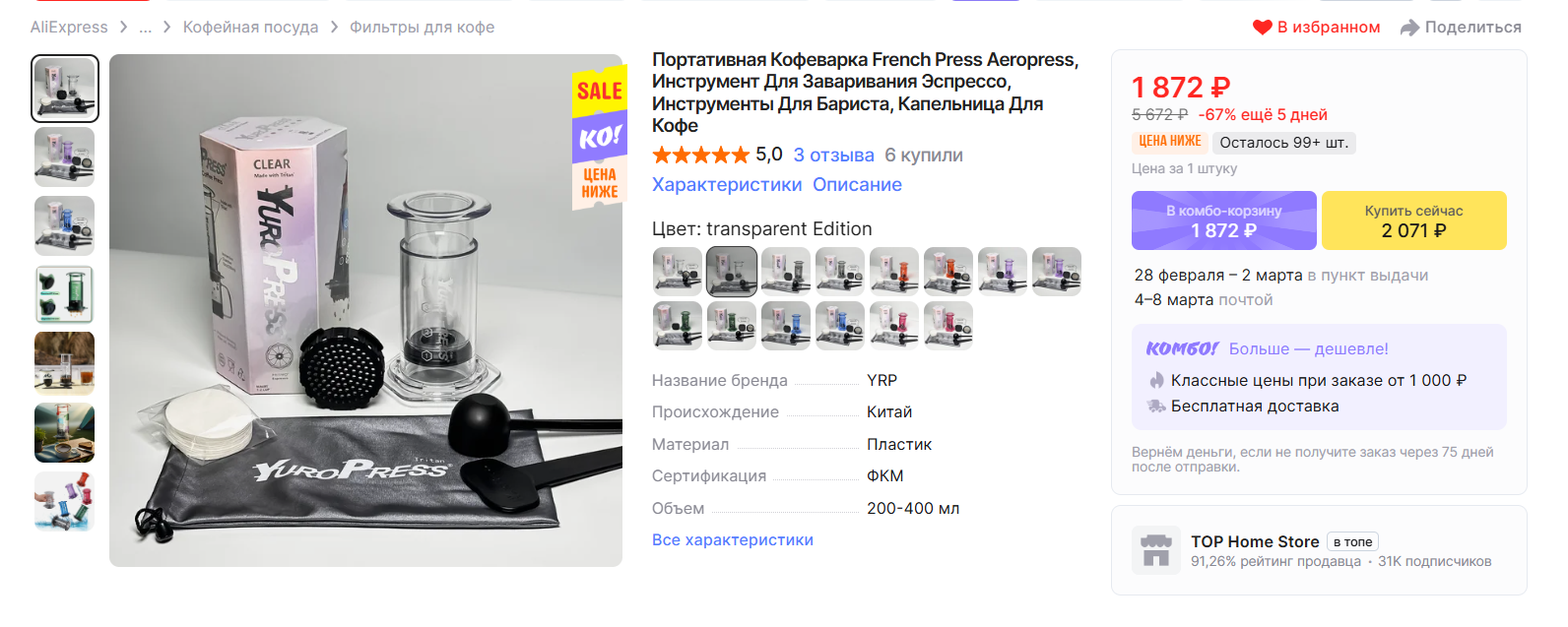 Аэропресс: Тоже лучше оригинальный. Ну или YuroPress хотябы, подвальный китай не бери.