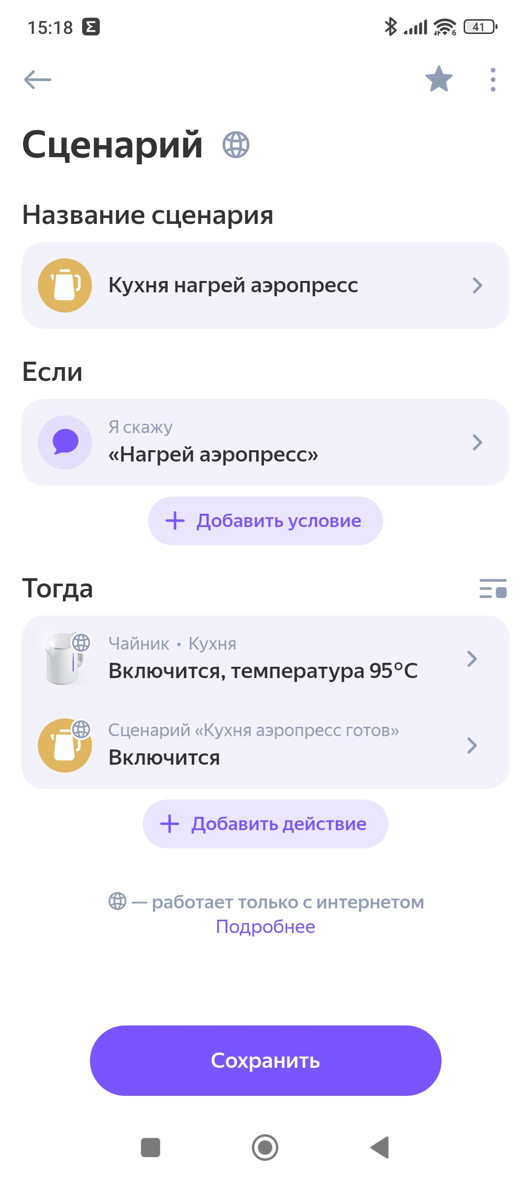 Ебусь с "умным" чайником - когда в сценариях шаг температуры только 5 градусов. Запускаю - пока взвешиваю/молю зерна, как раз успевает остыть до 92, колонка говорит -"аэропресс готов", я ей -"старт" - чтоб не произносить лишний раз -"поставь таймер на полторы минуты". Шиза?