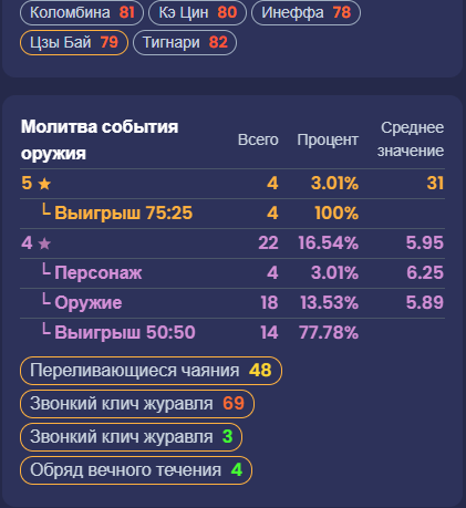 ✦ Гача-калькулятор https://hutaobot.moe/tools/gachacalc ✦ Показать персонажей картинкой https://akasha.cv/ ∙ https://enka.network/