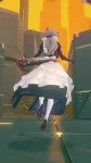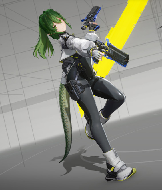 ⚪️Обычная атака состоит из 5 ударов. ⚪️У неё есть усиленное состояние, при котором атаки получают дополнительный урон молнией и эффект цепной реакции. ⚪️Она обладает «электрическим полем» (предположительно навык), которое может усиливать её атаки и умения, либо одновременно наносить урон врагам, находящимся внутри. ⚪️Также у неё есть ещё одно усиленное состояние (предположительно ультимейт), которое аналогично усиливает её атаки и навыки.