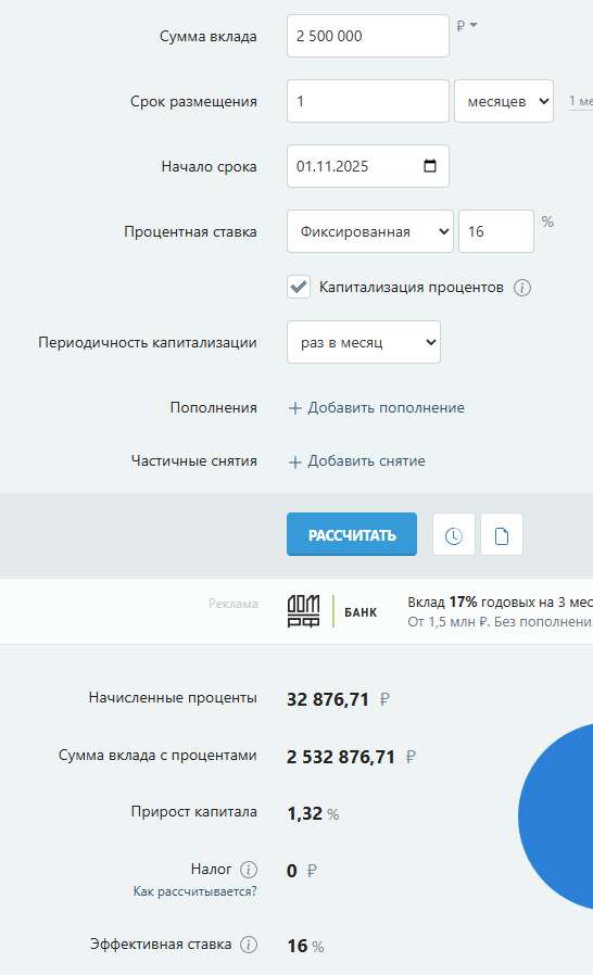 >Сколько налога за вклад тебе прилетит еще не считал? 13% сверх лимита.