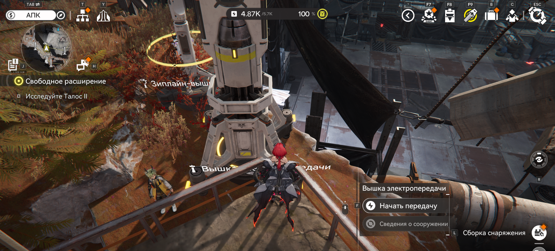 Перепрыгиваем, забираемся на трубу. По трубе до конца идём. Там будет ОЧЕНЬ маленький выступ, на который можно встать. Прыгаем на него, при помощи прыжков ставим туда зиплайн и пилон. Дальше сам разберёшься.