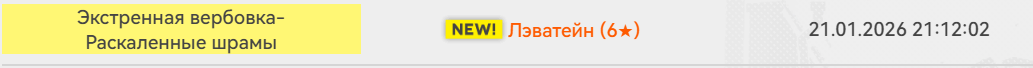 >>6394641 Только я вот смотрю на скрин и там написано что мне сигна упала на 7й крутке? И остальные тоже странно написаны, это трекер барахлит? Мне упало сигна и один ведж на 8й попытке т.е с 70 по 80 крутку