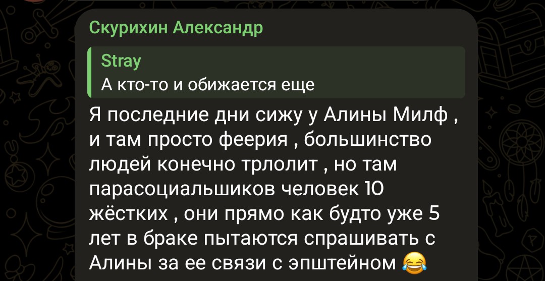 Из скуфини этой сегодня чот дохуя ЧСВ поперло опять, всерьез верит что делает что-то полезное.