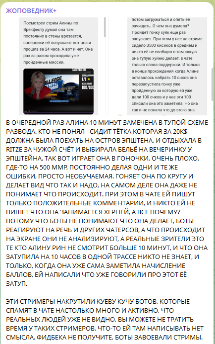 Ни стрима без упоминания жоп и анала. Видимо, кто-то из мамкиных ебырей, после того как она разошлась с алинкиным папашкой, и алинуса приходывал. Прямо в жопу. Детская травма, так сказать.