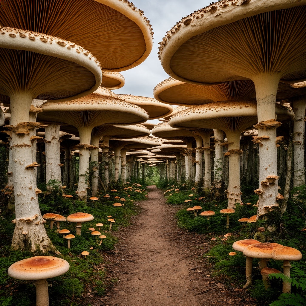 Под грибами.